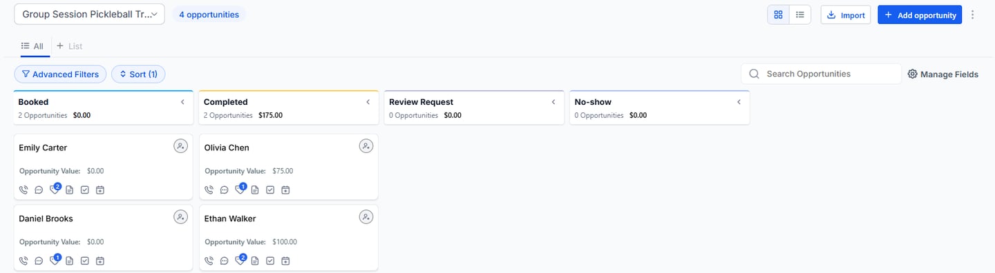 After a booking is completed, the player’s information is automatically stored inside the GoHighLevel CRM.
