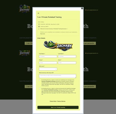 This project demonstrates a GoHighLevel funnel designed for a pickleball coach to present coaching offers and allow players to easily book training sessions.